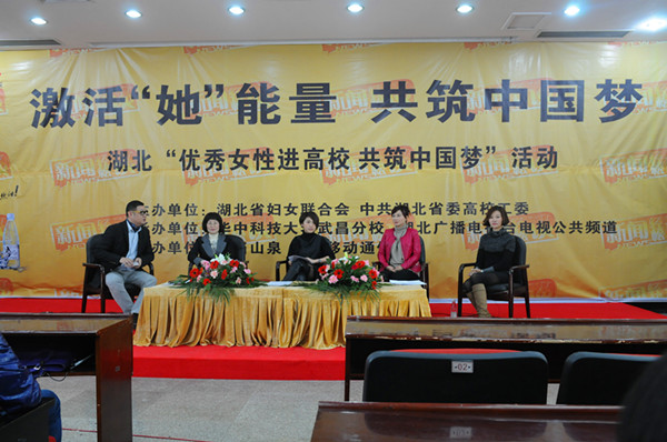 激活“她能量”,共筑中国梦。11月14日,由省妇联、省委高校工委主办,湖北广播电视台公共频道,及我校承办的湖北“优秀女性进高校,共筑中国梦”活动如期举行。