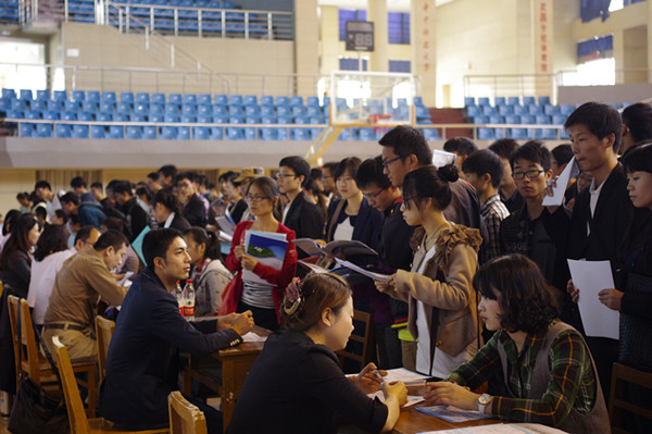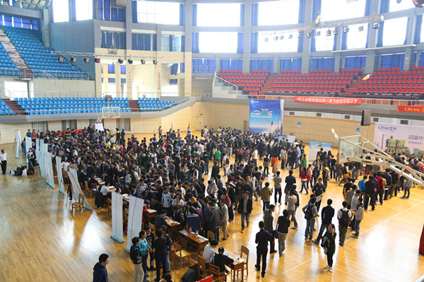 10月22日,大型公益性环境名企招聘会在学校体育馆举行。20余家企业在此招贤纳士,吸引了包括武汉大学、华中科技大学等重点高校近4000学子前来应聘。
