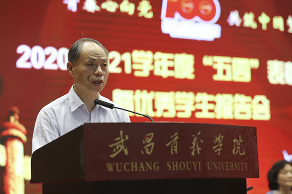 5月7日下午,武昌首义学院2020—2021学年度五四表彰暨优秀学生报告会在首义礼堂隆重举行。校党委书记周进,校长李崇光,常务副校长吴昌林,副校长石长顺、李桂兰、邓明然、金国杰,校党委副书记邹星庐,副校长金鑫出席大会。校团委书记罗萍主持。