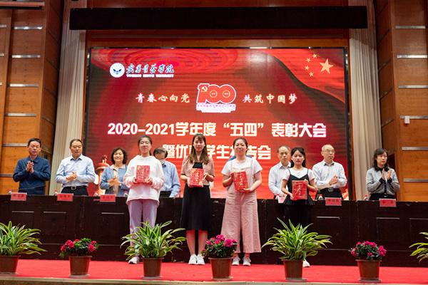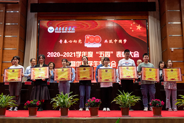雄伟庄严的国歌奏响,大会正式开始。李崇光宣读《关于2020—2021学年度国家奖学金、国家励志奖学金获奖情况通报》,李桂兰宣读《关于表彰学科竞赛获奖学生及组织单位的决定》,石长顺宣读《关于表彰2020年新闻宣传工作先进集体和个人的决定》,邹星庐宣读《关于表彰2020—2021学年度校先进集体和个人的决定》和《关于表彰2020—2021学年度校优秀学生社团和优秀学生社团指导老师的决定》。伴随着欢快的乐曲与热烈的掌声,校领导为获奖单位和个人颁奖。