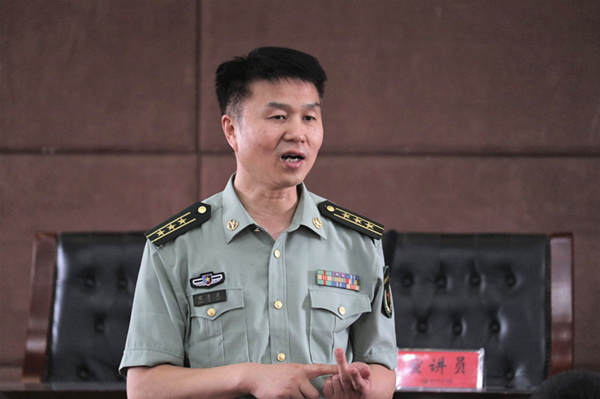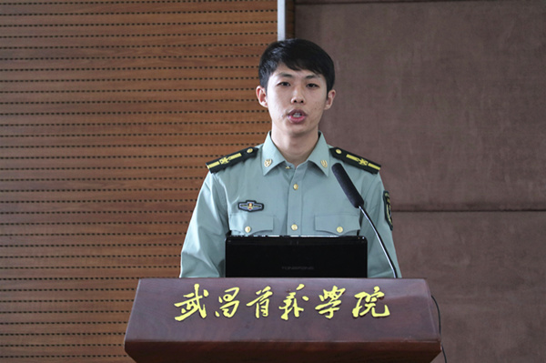 邹星庐在讲话中结合自己二十三年的服役经历,为同学们分享了军旅生涯的收获和感触。他指出,参军入伍能够培养青年令行禁止的作风、吃苦耐劳的精神、敢于战胜的勇气和团结协作的意识。军旅生活强调“首战用我,用我必胜”的思想意识。到部队服役,对于当代大学生而言,不仅是身体上的锻炼,更能够锤炼思想、磨炼精神、培养坚强意志和顽强信念。他鼓励同学们积极投身军营锻炼自我、磨砺青春。