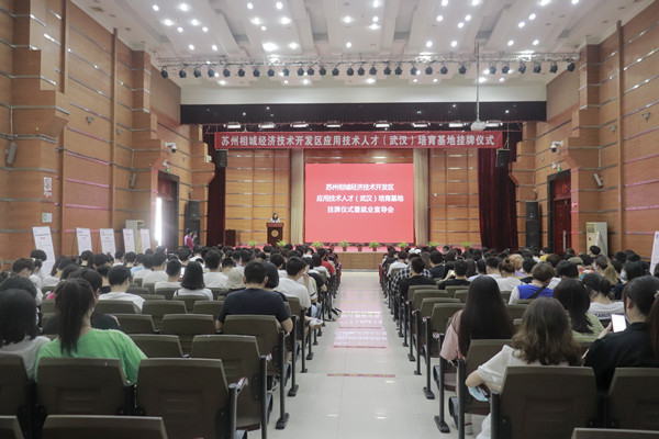 下午,苏州相城经济技术开发区应用技术人才(武汉)培育基地挂牌仪式暨就业宣导会在首义礼堂举行。中国现代产业学院协同创新平台副理事长吴卫华、苏州相城经济技术开发区社会事业局局长徐春来,苏州优才项目总经理高华,校党委副书记邹星庐,校党委副书记、副校长金鑫等出席仪式。招生与就业指导处负责人,各学院党总支书记、副书记,应届本、专科毕业生代表参加。邹星庐主持仪式。