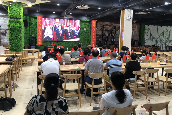 我校领导与机关、艺术设计学院党总支全体党员在行政楼八楼学术报告厅集中收看庆祝中国共产党成立100周年大会直播,认真聆听习近平总书记在庆祝大会上的重要讲话。其他各党总支、直属支部分别组织党员同志集中收看庆祝中国共产党成立100周年大会直播。各总支、直属支部还组织了重温入党誓词、唱红歌、“我对党说”等活动。