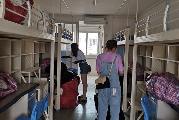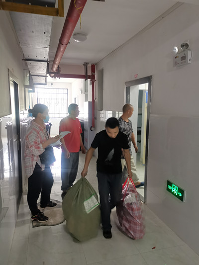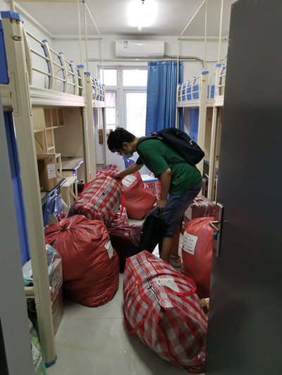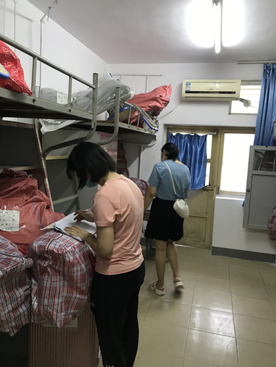 8天时间里,从清晨到深夜,教职员工们不辞辛苦地对行李进行清点,配合搬运师傅装车,确保搬运物品安全。低楼层的行李,搬运师傅手搬肩扛,将行李从楼上搬至楼下;高楼层的行李则拖运至滑梯,运至楼下。所有行李安全装车后转运到武昌校区,各学院辅导员们清点无误后,由搬运师傅搬至目标寝室对应床位,辅导员进入寝室再次清点确认。在学生处、嘉鱼校区工作部、各学院、保卫处(宿管中心)、搬家公司等单位共同努力下,克服疫情防控与酷暑多雨等不利因素,历时8天,终于将4100余名学生的13200余件行李顺利搬迁至武昌校区指定床位,圆满完成搬迁任务。