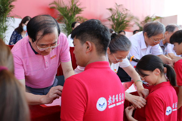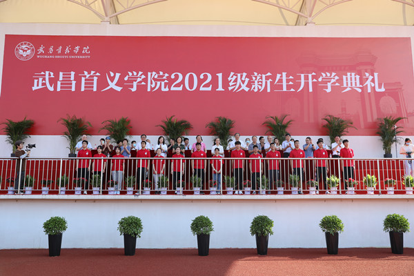 大会在庄严肃穆的升国旗仪式后拉开序幕。党委副书记、副校长金鑫宣读《关于减免涂广玲等45名新生第一学年学费的决定》。校领导等为14名新生代表佩戴校徽。从这一天起,2021级同学们将与首义大家庭真正血脉相连,并在以后的学习工作中以“敢为人先、自强不息”首义精神自省自励,以奋斗的姿态融入伟大时代的洪流,砥砺谱写青春华章。