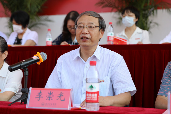 校长李崇光讲话。他代表学校向2021级新同学表示热烈欢迎!他简要介绍了武昌首义学院办学的历史文化和办学成就;寄语同学们,秉承“学以广才、志以成学”的校训,度过大学学习和生活的美好时光,顺利完成学业,成长、成人、成才。他向同学们提出三点希望:一是志存高远、学有所成;二是发奋学习、刻苦努力;三是勇于实践、知行合一。他希望同学们珍惜大学时光,用智慧和勤奋实现自己的梦想,用不断进步回报亲人,以优异的成绩为武昌首义学院带来荣光,以扎实的专业能力投身中华民族伟大复兴的宏伟事业!