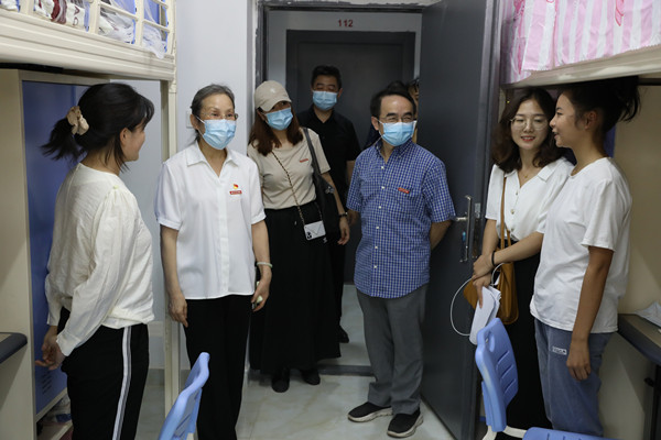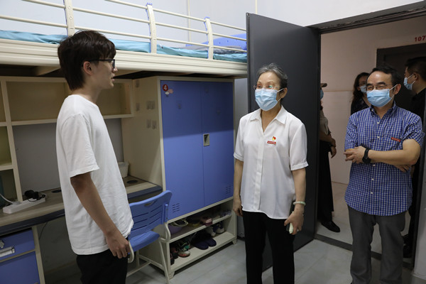 典礼结束后,周进前往学生宿舍看望新同学。她与同学们亲切交谈,并希望大家能快速适应大学生活,同学之间在学习和生活上团结互助,充分利用好大学四年时光,学习本领,增长才干。她表示,同学们遇到任何困难和问题都可以找老师协助解决,学校将尽可能提供好的学习生活环境,助力广大学生成人成才。