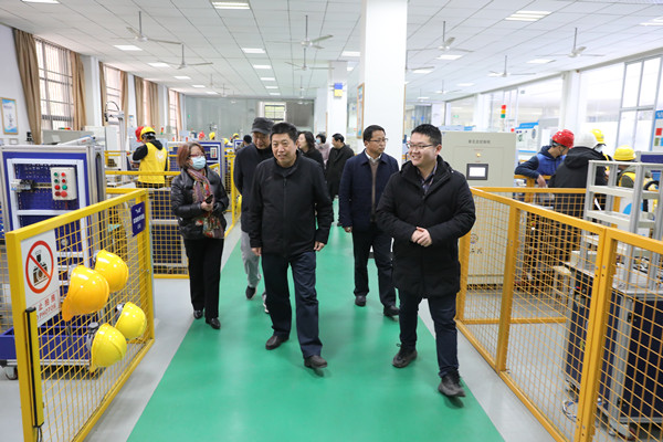 在校领导陪同下,张方胜一行首先参观了智能制造工程训练中心、机电实验大楼、信息实验大楼、计算机中心、媒体融合仿真实验中心、校史馆。参观过程中,李崇光向张方胜一行介绍了实验实训室建设情况。张方胜饶有兴致地与正在上实验课的学生进行了交流。