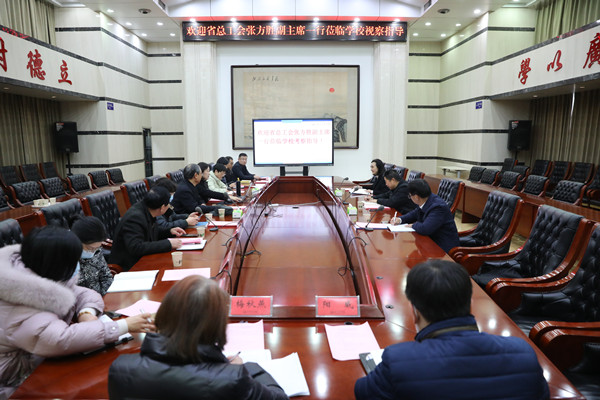 12月24日下午,湖北省总工会副主席张方胜,省总工会职工技协办公室主任张九红,省教科文卫体工会副主席李学初一行来校考察。校长李崇光,副校长李桂兰,党委副书记、副校长金鑫陪同考察。