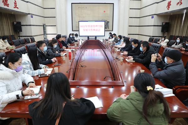 2月22日下午,理事长金国华与经济管理学院教师代表就2022年学院发展工作展开亲切座谈,座谈会在行政楼8楼理事会接待厅举行。副校长兼经济管理学院院长邓明然,党委副书记、副校长金鑫,相关职能部门负责人参加。会议由邓明然主持。
