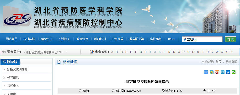 刚刚,湖北省疾病预防控制中心官网发布最新《新冠肺炎疫情防控健康提示》。全文如下: