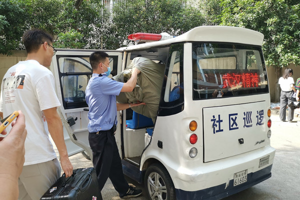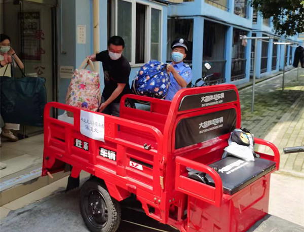 受疫情影响,学校实行封闭管理,外来车辆不能进校,毕业生搬运行李离校成了难题。为了方便学生,做好毕业生离校的服务工作,保卫处组织人力物力做好贴心服务。仅13日一天,志愿服务队就为100名毕业生运送行李40余次。因运送次数多,电动三轮车没电了,巡逻车也加入到运送服务中。