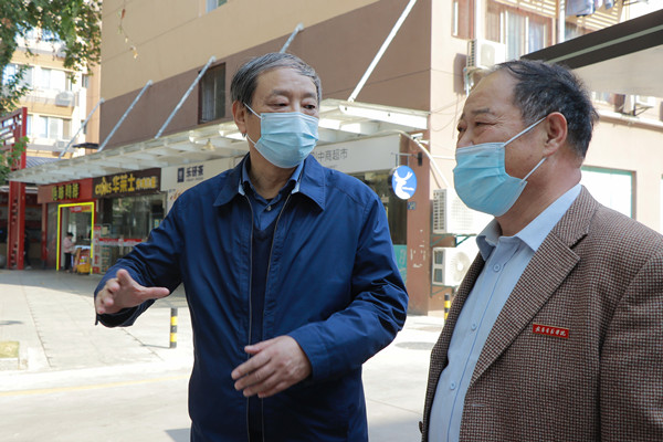 李崇光一行依次巡查了校内隔离点、核酸检测点、南区食堂、南区学生公寓、西区食堂、西区超市、西区学生公寓、校内快递收发点等场所。每到一处,李崇光等向单位负责人和工作人员详细了解防疫政策的执行落实情况和人员配备是否到位,并仔细查看防疫物资配备是否充足。针对校园各处可能存在的风险点,李崇光一行向各单位负责人和工作人员提出了具体工作求。巡查过程中,李崇光一行对坚守岗位的教职员工表示了亲切慰问。