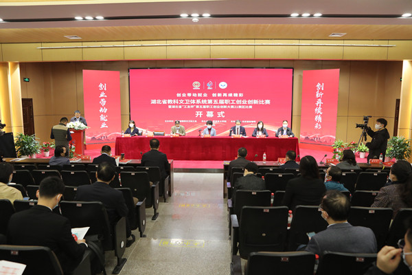 创业带动就业,创新再续精彩。11月19日至20日,湖北省教科文卫体系统第五届职工创业创新比赛暨湖北省第五届“工友杯”职工创业创新大赛21赛区比赛在我校成功举办。湖北省教科文卫体工会主席胡东红、湖北省职工科技文化中心主任王勇、湖北省教科文卫体工会副主席李学初、湖北省教科文卫体工会经审会主任王占兵、湖北职工科技文化中心副主任杨艳茹,我校校长李崇光,党委副书记邹星庐,党委副书记、副校长金鑫,以及全省教科文卫体系统各直属单位工会带队领导出席开幕式。