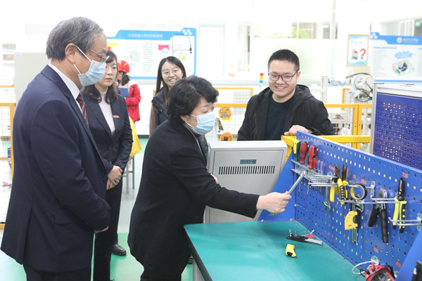 比赛间隙,胡东红一行在校领导陪同下,参观了工程训练中心、信息实验大楼、机电实验大楼、校史馆、图书馆、信息技术中心等场馆。
