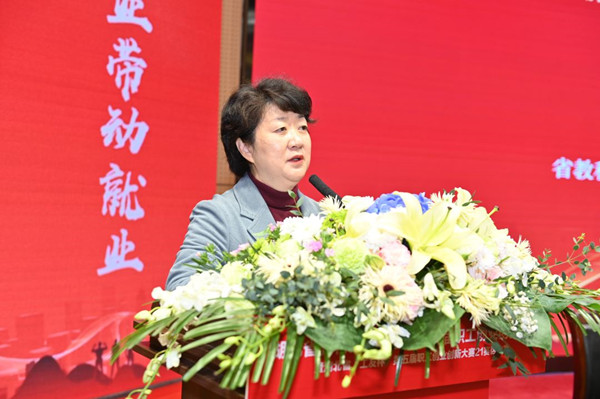 胡东红致开幕辞。她指出,在全党上下深入学习贯彻党的二十大精神,昂首阔步迈向全面建设社会主义现代化国家新征程的关键时刻举办此次大赛,是深入学习贯彻党的二十大精神、积极投身全面建设社会主义现代化国家新征程的深度实践,也是广大教职工追逐梦想、实现自我价值的精彩呈现。湖北省高校云集、资源丰富、基础深厚、禀赋优越,希望广大参赛教职工以严谨求实的态度赛出风格,赛出水平。以比赛为契机,充分发挥自身专业优势,找准产学研结合点,把精心耕耘的科研成果转化为现实的生产力,以创业创新的倾力实践,落实立德树人的根本任务,激活高校创新创业的一池春水。希望全省高校着眼长远、聚力聚焦,把创新创业教育融入高校人才培养全过程,充分发挥大学科技园、大学生创业园、大学生创客空间等校内创新创业实践平台作用,不断丰富教学形式和内容,努力培养更多具有创新精神、创业意识和创新创业能力的新时代大学生,为实现更加充分更高质量的就业作出高校应有的贡献。希望系统各级工会组织以党的二十大精神为引领,深入学习贯彻习近平总书记关于工人阶级和工会工作的重要论述,进一步激发广大教职工劳动热情和创造潜能,大力弘扬劳模精神、劳动精神、工匠精神,不断丰富平台载体,广泛开展岗位练兵等活动,为广大教职工创业创新营造良好的氛围,展现教科文卫体系统独特的风采。