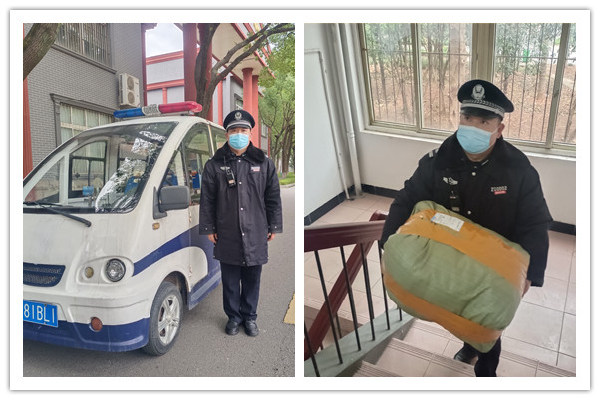 11月29日上午也是朱继冬当班。得知一名学生的家长从老家寄了一大包冬季衣物过来,但学生不能出校门拿取,心里非常着急时,朱继冬就立马开着巡逻车到学校附近快递站帮学生代取了包裹并送到学生公寓楼下。因为包裹又大又重,想到学生自己拿上楼费力,朱继冬二话不说,抱起包裹就给学生送到了六楼寝室。学生看到此情此景,连声道谢,十分感激保安叔叔的暖心帮助。
