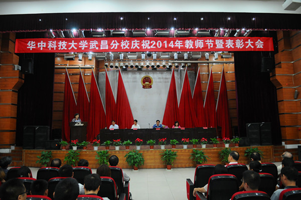 金国华董事长分别向校领导、各教学单位负责人献花。周进校长宣读了《关于湖北省第四届高校青年教师教学竞赛结果通报》;王炎坤副校长宣布了《关于表彰2014年优秀教师、优秀教育工作者的决定》、《关于公布华中科技大学武昌分校第一届科学技术成果奖励项目的通知》;李桂兰副校长宣读了《关于表彰2013—2014学年度教学质量奖评审结果的通知》、《关于第五届青年教师教学竞赛的表彰决定》、《关于表彰2013年省级优秀学士学位论文指导教师和2014届本科生校级优秀毕业设计论文一等奖指导教师的通知》、《关于公布2013届本科毕业设计/论文工作优秀院系评比结果的通知》、《关于表彰2013—2014学年度考场管理工作先进的通知》。在欢快的乐曲声中,校领导向受表彰的单位和个人颁奖。