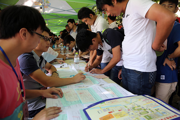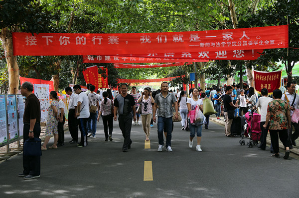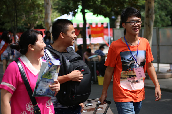 还有这么一群人,他们的脸上始终挂着微笑,他们穿梭在校园,为新生提供服务,再累也从不抱怨。校学生会、青年志愿者协会、阳光爱心协会的志愿者们分别设立了迎新点,耐心地为新生解决困难。伴随着一曲曲悦耳的音乐,校大学生新闻中心广播台全天候滚动播报迎新消息,新闻中心的学生记者们穿梭在各个迎新点记录新生点滴,传播学校信息,传递正能量。