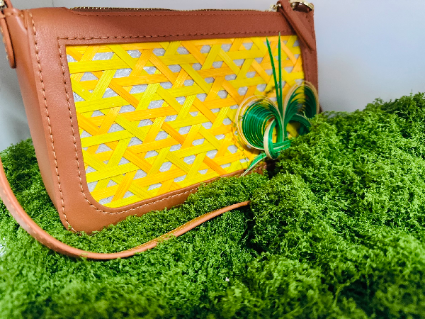 与荆楚纹样系列方巾同样吸睛的,还有视传2104班黄未设计创作的“古竹新韵”竹编箱包。这套产品以“四季流转”为灵感,摒弃传统竹编箱包单一风格,创新采用“竹编+皮革”组合,融入四季色彩与纹样设计,既保留了竹编的自然肌理,又解决了传统竹编易磨损、承重弱的痛点,兼顾观赏性与实用性。