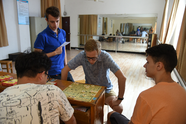 25日下午,洋学生们又跟着志愿者学起了中国象棋。jonathan和joe联手赢了“中国老师”一场比赛,这让他们很兴奋。Jonathan说:“学习中国文化是一件很有意思的事情,中国象棋虽然与国际象棋有很多相似之处,但对我们来说,中国象棋更具挑战性,希望以后还能来这里继续学习。”