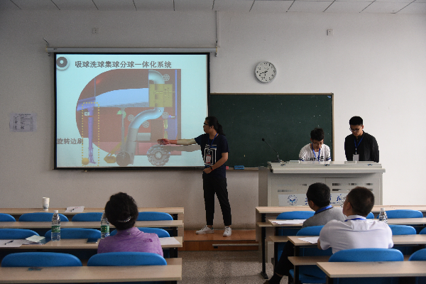 “由于羽毛球的易损性,目前市面上羽毛球收集装置应用很少,我们设计的这款‘智能羽毛球收球机’,最大程度地降低了羽毛球在回收过程中的损耗,同时还实现了好球与损球的分类与计数功能……”答辩现场,武昌首义学院的崔晟和队友向评委展示了自己的产品设计。这款装置通过扫球机构将散落的羽毛球扫入,再通过运输装置和红外线扫描判断羽毛球的损坏程度、进行分类处理。