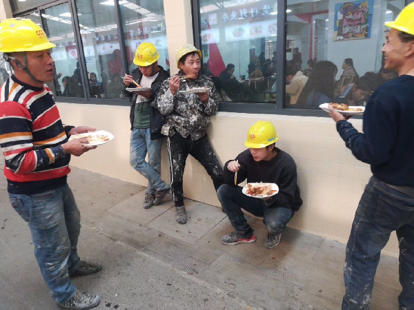 [长江网]建筑工人怕弄脏座位食堂外就餐,师生感动点赞