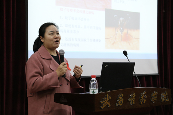 湖北高校思政网12月1日讯 (通讯员 陈琳)为贯彻落实《国务院关于进一步加强艾滋病防治工作的通知》文件精神,加强学校健康教育工作,增强大学生防艾意识和自我保护能力,切实提升大学生健康素质水平,在第三十一个世界艾滋病日来临之际,武昌首义学院特别邀请武汉大学医学院熊海蓉副教授于11月29日晚来校作专题讲座。