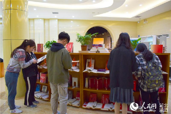 人民网4月16日讯 “携来百侣曾游,忆往昔峥嵘岁月稠。”漫步书柜间,书页墨香怡人,历史的厚重与沧桑感扑面而来……在第24届“世界读书日”来临之际,武昌首义学院图书馆主办“我的中国”红色经典主题书展,邀约同学们品读红色经典,共筑伟大“中国梦”。