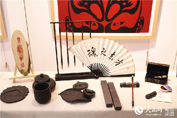 这组黑陶作品,取材于京剧的脸谱元素,而在制作方面则完全使用了屈家岭特有的黑陶工艺,本着民族文化传承的初心,创作者将京剧中的生、旦、净、末 、丑六个元素简化之后融入作品之中。以具有文化底蕴的黑陶为载体,将中国古代传统文化中的文房四宝即笔、墨、纸、砚,饰以传统的京剧人物形象图案呈现出来。