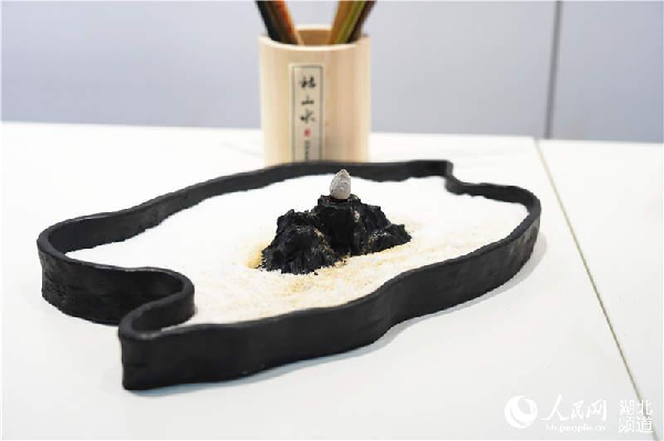 仙雾缭绕的作品“绕云梦”出自熊子扬之手,他将五个焚香昙设计为巢湖、青海湖、鄱阳湖、太湖以及洞庭湖的形状,让黑陶白沙给作品更添一层宁静,插香处别出心裁的设计,使得烟雾像水流一样向下行,围绕在山水周围,给人与众不同的观感。