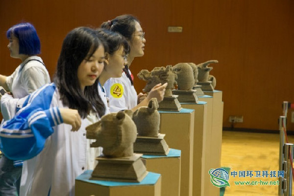 活动现场展示了一大批用生活垃圾制作而成的手工艺品。这其中,一组由纸壳制成的圆明园十二生肖兽首格外引人注目。湖北交通职业技术学院的郭老师向记者介绍,这12个生肖兽首,是由该校学生耗时半个多月、采用数控技术制成。“通过这类手工制作,既弘扬中华传统文化,也传递着环保的理念。“