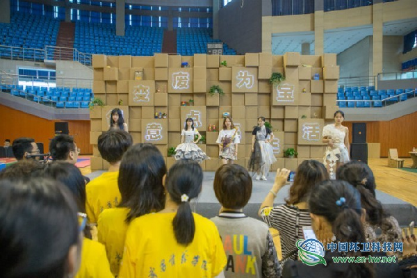 活动现场由生活垃圾制作而成的服装秀