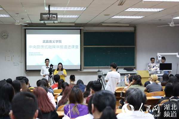 任课老师曾毅介绍,课堂将理论与实践有机融合,将时事热点作为教学改革尝试切入点,利用网络、文字、图片、现场直播、包装推送于一体的融媒体技术,打通各媒体平台,实现中央厨房式资源统一调配,极有利于各专业学生综合素质和实践能力的培养。