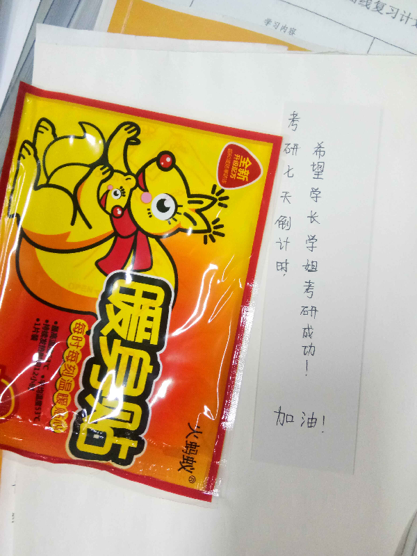 长江网12月18日讯(i记者曹可雯 屈新颖)祝福卡、暖身贴、棒棒糖,12月15日,武昌首义学院备战研究生考试的学子们不约而同地收到了一份“暖心礼”,这给他们紧张的复习增添了一份暖意。