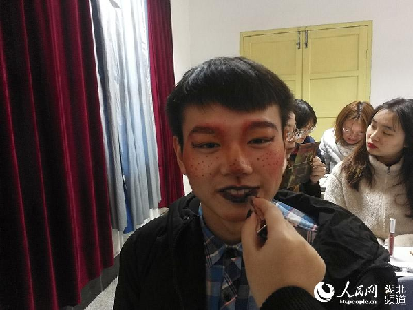[人民网]武汉一高校大学课堂上演圣诞妆容秀