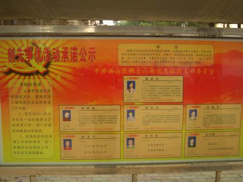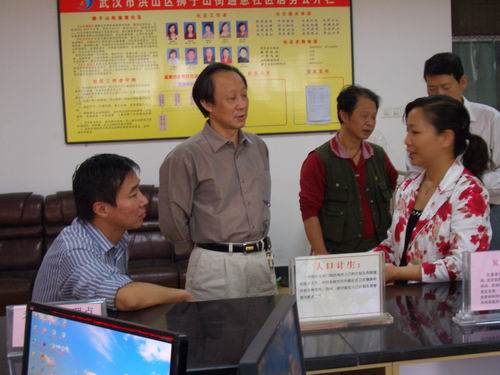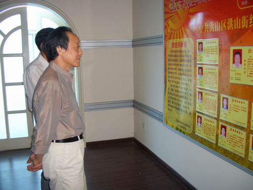 戴人玉观看红旗社区党总支的领导干部“承诺牌”
