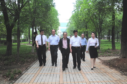 校领导陪同专家们参观校园