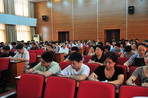 周进校长扼要回顾了本学年度的主要工作。讲话指出,在全体教职员工的共同努力下,学校认真贯彻落实“国家教育发展纲要”精神,各项工作以良好发展势头获得稳步推进,具体体现于六个方面:一是教学改革取得显著成效,各专业核心能力得到进一步凝练;二是科研工作全面启动并取得实质性进展,各项科研制度建设及各院系科研项目实施顺利;三是学科建设扎实稳步发展,首批三个省重点培育本科专业的建设工作有序进行;四是实验室设备和图书资源的盘点与建设工作成绩突出;五是各职能部门工作落实到位,服务功能增强,频现新生质量、学科竞赛、学费收缴率等新亮点;六是应对通胀压力全体教职工待遇呈阶梯式增长。
