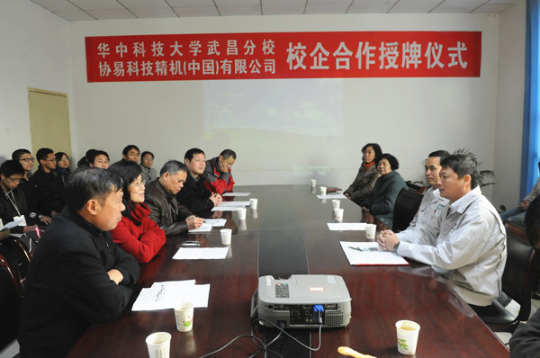 双方共同完成了授牌仪式。钟义庆代表公司向周校长赠送了公司50周年纪念品。会上,徐院长向与会人员分享了自己的参观心得,“协易公司设备齐全、机器性能好,是学子们理论联系实践的又一检验平台。”他表示,此次合作有利于指导学生们实践操作,同时也有助于教师对最新机械的认识,从而促进实践教学的开展。