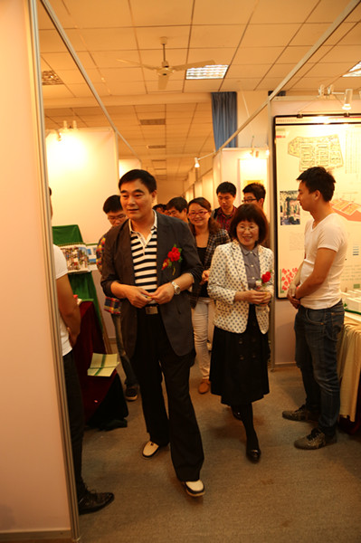 展会上环境艺术设计专业杨迪同学的设计作品《环境艺术设计——华中科技大学武昌分校艺术设计学院学术交流中心设计方案》受到金国华董事长的好评。该作品从我校校训中提取了设计理念——乐群·创新,并将其作为项目设计核心应用于设计作品中。
