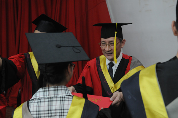 副校长王炎坤为毕业生正冠拨穗
