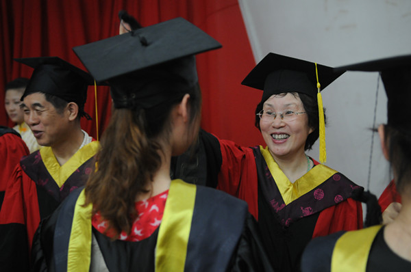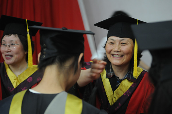 校长周进为毕业生正冠拨穗