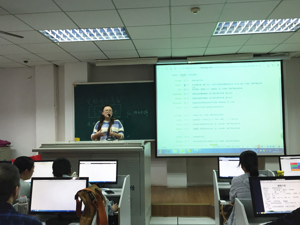 陈媛媛以《一“平”三“端”,打造智慧教学系统》为题,系统介绍了智慧教学系统的“云平台”“教室端”“移动端”和“管理段”的功能及使用方法。培训中,她通过相应网址把手机和电脑连接起来,将教学内容投放在大屏幕上,带领老师们实操网络课程建设,从课前备课、查找资料,到课中教学互动,再到课后作业、成绩管理、课外阅读和学习,充分拓展了教学时空,丰富了教学内涵,实现了全流程教学管理。