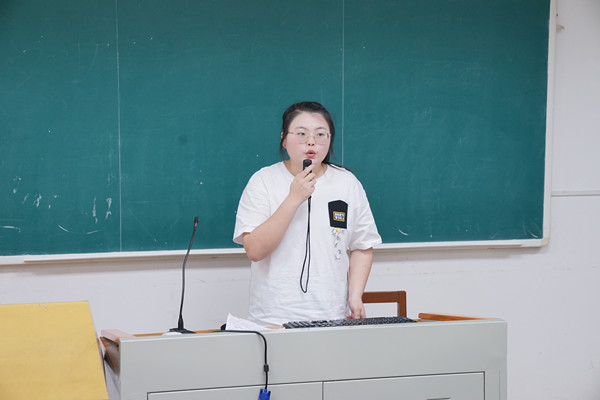 在金鑫的启发带动下,预备党员代表英语1803班王红霞为同学们介绍了人民公仆焦裕禄和“时代楷模”张桂梅,并号召同学们要像先进党员一样牢记自己的身份和使命,无私奉献,对党忠诚,忘我工作。入党积极分子代表英语1902班王娜娜则以视频的形式带领同学们参观红色基地,学习先辈精神,并结合自身经历作“百年风华正青春”演讲。