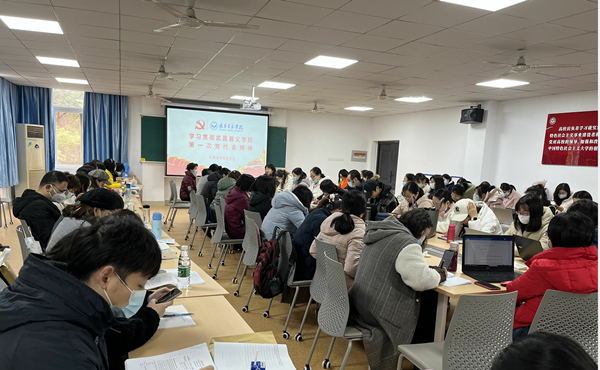为深入学习贯彻学校第一次党代会精神,把党员干部和广大师生的思想统一到大会精神上来,把力量凝聚到大会确定的任务上来,外国语学院党总支精心组织,将个人自学与集体学习、线上学习与线下学习相结合,多种形式深入宣传贯彻学校第一次党代会精神。1月4日上午,学院在语音楼二楼会议室召开全体教职工大会,集体学习了学校第一次党代会精神。会议由院党总支书记杨芳主持。