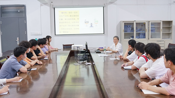 6月23日,校党委书记周进在经济管理学院党员活动室为学子讲授《实现3060“双碳”目标 是承诺更是挑战》思政大课。经济管理学院党总支书记陈佃生主持。