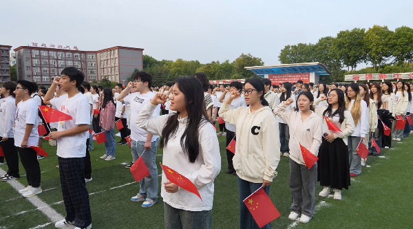 “五星红旗迎风飘扬,胜利歌声多么响亮……”随着熟悉的旋律在校园中回荡,师生们手持五星红旗,和着节拍整齐挥舞,深情合唱《歌唱祖国》,用质朴有力的歌声诠释对祖国母亲最纯真的爱、最炙热的情,共同祝愿伟大祖国繁荣富强。