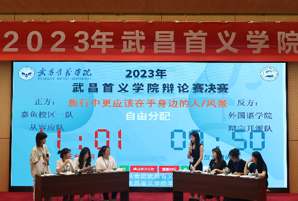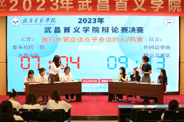 经过多轮角逐,最终,武昌校区外国语学院辩论队和嘉鱼校区新闻与文法学院辩论队进入决赛,展开终极对决。