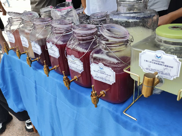 为培养学生实践创新能力,推进产教研融合,6月15日下午,城市建设学院生物工程专业组织学生在西区广场搭建自酿酒展台,举行了教学实践成果展示。教务处处长张小菊、城市建设学院实验与实训中心主任徐翔宇及全体教师现场与师生一起品鉴美酒。